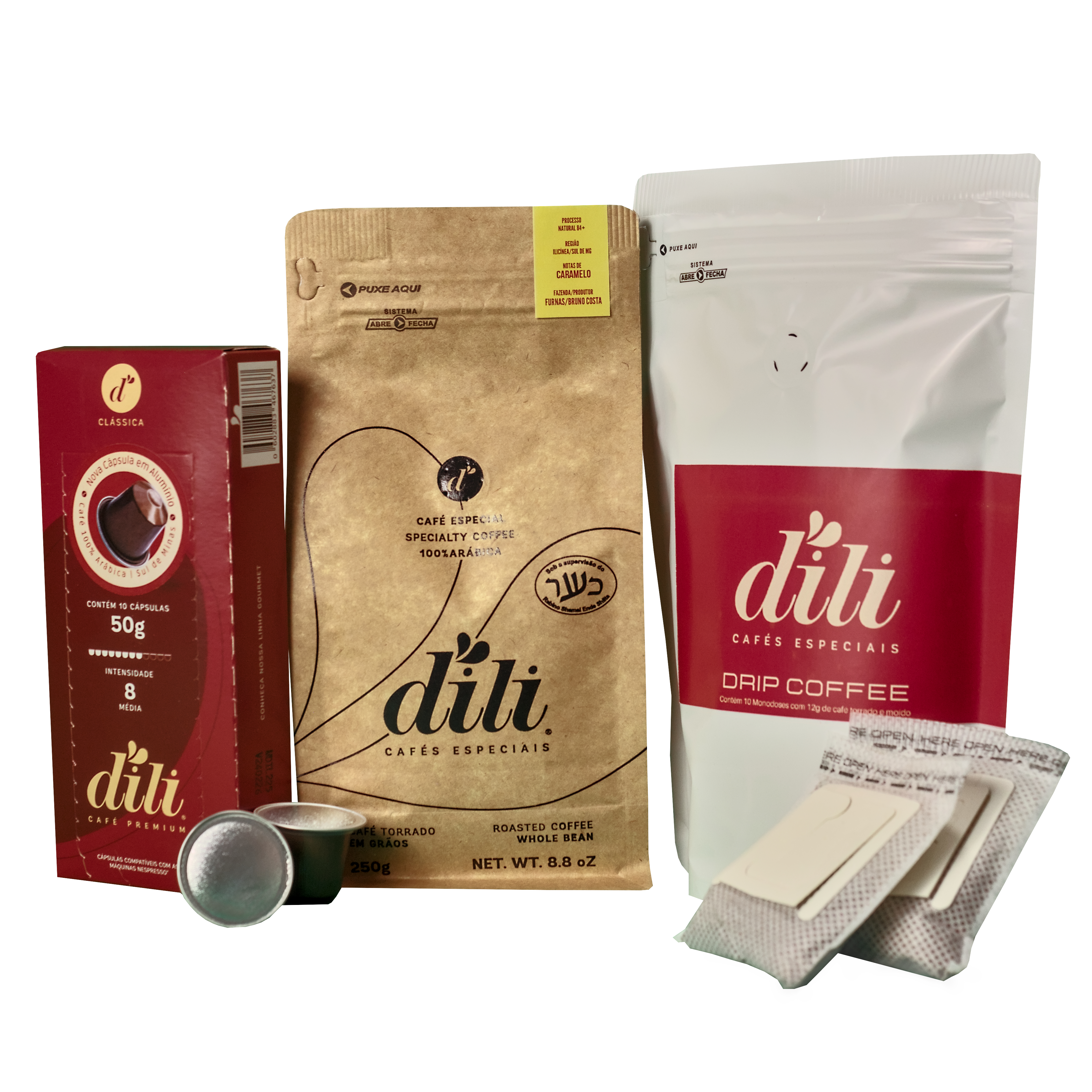 Pra quem vive o café como ritual.Receba em casa: 01 café exclusivo diferente a cada mês e 01 café clássico da Dili, ambos com nota acima de 84 pontos.